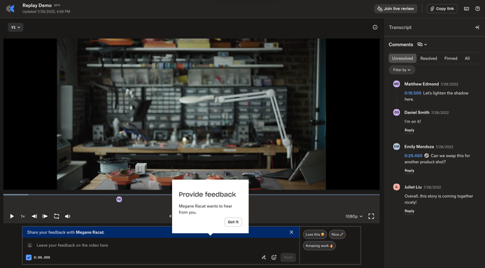 Name: MeganeRole: Product ManagerFavorite Replay feature: I really like how easy it is to use Replay. You can share files with anyone without them needing an account. They just have to click the link you sent, and in a few seconds, they'll see your file and know what to do with it! - donajose