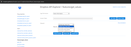 Dropbox API Explorer "features/get_values"