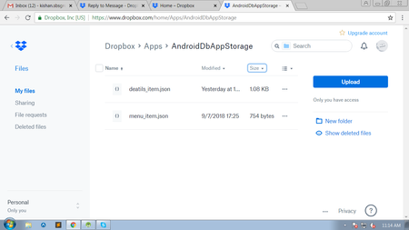 Additionally, make sure you're using an access token for the right account.- kmsbs7 years agoExplorer | Level 4Using upload code i uploaded deatils_item.json file in AndroidDbAppStorage folder.