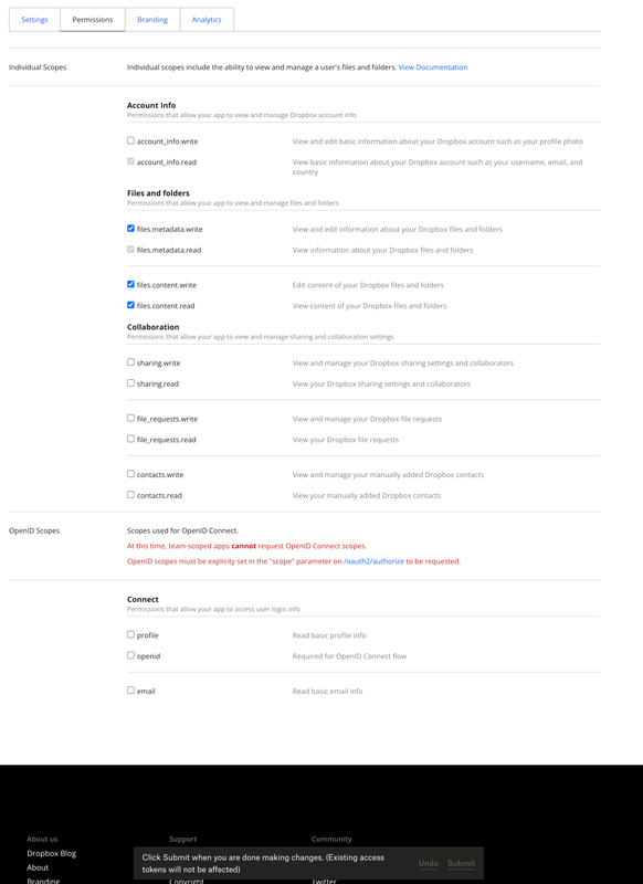 I'm happy to hear that you were able to change the scopes for your API app. We appreciate your feedback on this forum, and I have raised it with our development team to help improve the user experience in the App Console.
