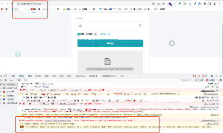 Refused to display 'https://www.dropbox.com/' in a frame because it set 'X-Frame-Options' to 'deny'.