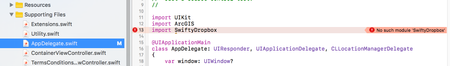 I'm using Xcode 8.3.3 and CocoaPods. I successfully installed the SwiftyDropbox and its dependency Alamorefire. Then I opened the generated workspace file and tried to import SwiftyDr...