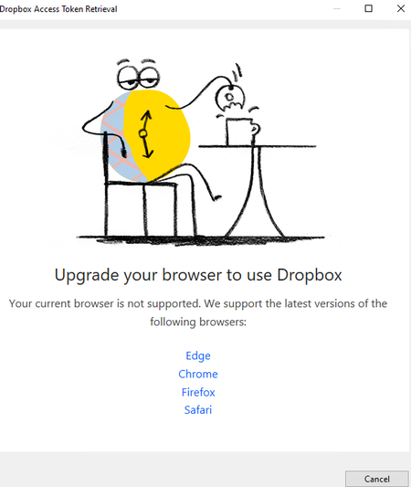 5 years agoYes, the /oauth2/authorize page is a web page on the Dropbox web site. A "web view" is a sort of embedded browser in an app, which can be used to display web pages in the app. We do not officially support displaying the Dropbox /oauth2/authorize web page in a web view. Apps should send the user to this web page in their own system browser, which needs to be one of the officially supported browsers.