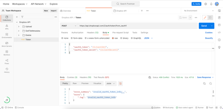 3 years agoI see you're trying to call the /2/auth/token/from_oauth1 endpoint. If this is a new integration, you should not be using that endpoint. This endpoint is only meant for use if you have pre-existing OAuth 1 access tokens, and the oauth1_token and oauth1_token_secret parameters would refer to the old OAuth1 access token key and secret, not your client ID and secret. This endpoint should not be used as part of the current OAuth 2 app authorization flow.