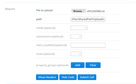 I am trying to upload a file in a path using dropbox api however, using the api explorer via: I am getting Error 400: for a wrong path I believe. If I for example have a shared f...