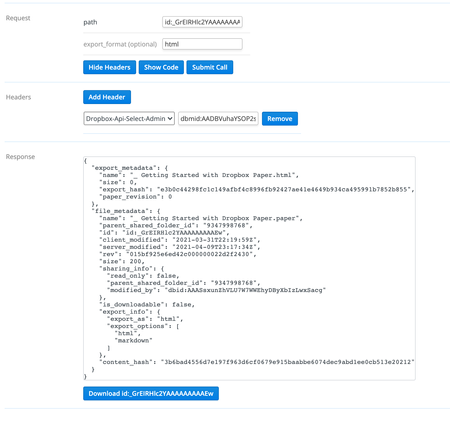 Hey everyone! I'm having trouble getting the actual paper doc content when using the files/export endpoint. When I make the call on the document I do see the relevant export and file metadata att...