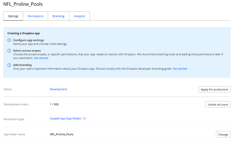 I have a function that is utilized once the user has made selections on all games and clicks the Save button. This begins the upload attempt to my dropbox app. See details of my dropbox app in my initial post. I wanted to include this in case there was an issue with how I setup my dropbox api.