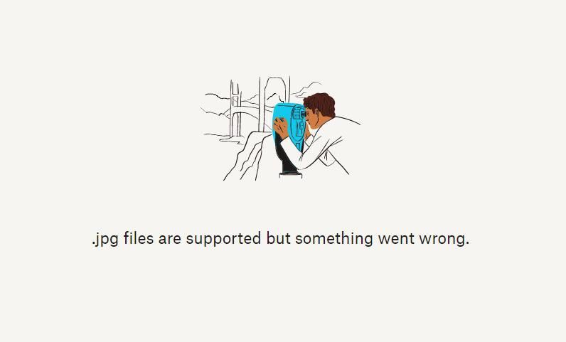 I am having this same issue and can't find a solution. I send folders to two clients and they both sent me screenshots of this message ".jpg files are supported but something went wrong". I send dropbox folders to many clients and this is a first.