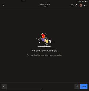 Does the file preview normally after downloading or exporting it to your device? Also, does it open normally from a web browser?