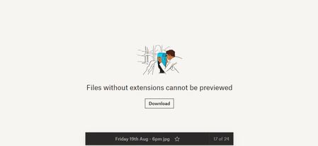 so I have a similar problem almost every time I rename a picture its version changes to a file that cannot be previewed even when downloaded. it says files without extensions can not be previe...