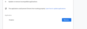 Didn't notice that anything that actually has issues - it's just Chrome complaining that DropBox is not compatible.