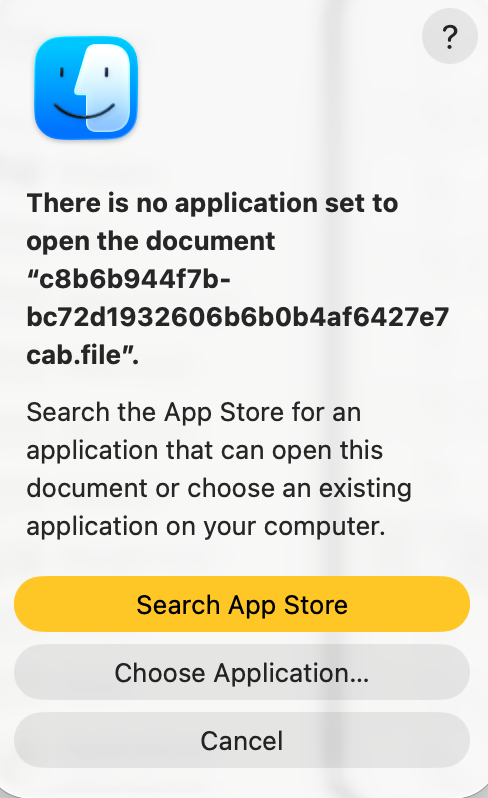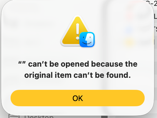 This is the error message when I try to open my folders from their previous location in Finder: