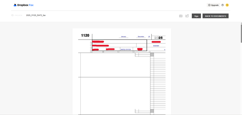 When I upload the document to Dropbox Fax, the preview looks completely normal. The form layout, table lines, and labels are all visible.