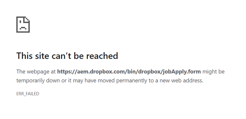 I'm trying to apply for a position at Dropbox but the website keeps failing when I press Submit. I have tried different browsers and have filled out the form 3 different times already.