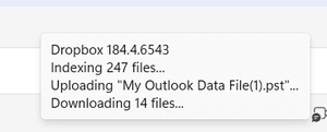Dropbox Stuck trying to upload "My Outlook Data File(1).pst" Wont upload or download any other files