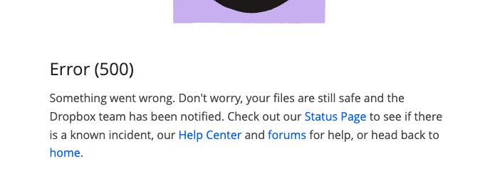 Error (500) on the Dropbox website
