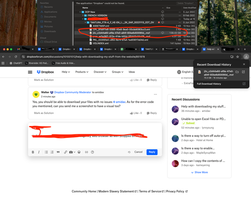 However, I’m having trouble downloading my materials. Some files are over 150 GB, and the app has been giving me issues. I managed to manually download some files through my browser, but now I’ve received an email saying that my traffic exceeded the 20 GB daily limit. Since my files are much larger than that, I’m stuck.