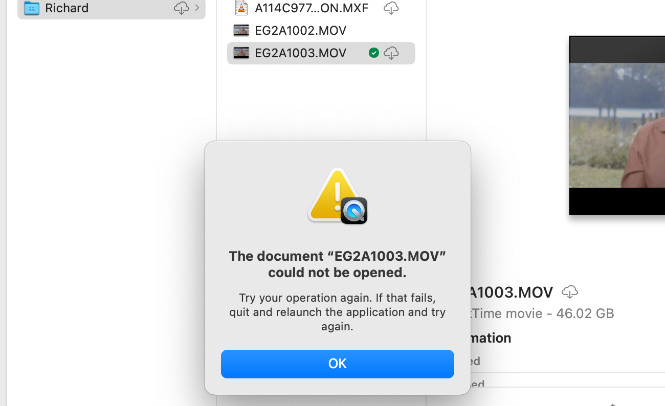 In the Dropbox App, when I double click on the file it says, 'The document could not be opened. Try your operation again. If that fails quit and relaunch..etc.'