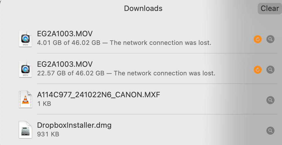 Using the website, I've tried Safari and Chrome with/without VPN, private browser etc and they all stop downloading at roughly 24gb. I've tried about 7 times in different configurations. Screen shot below.