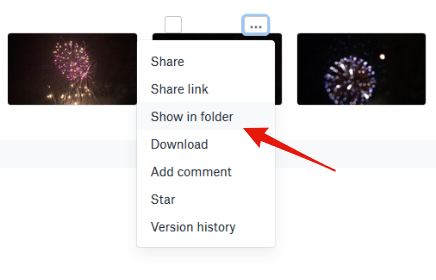 Yeah I don't know....it's just not there. The page SAYS I'm in the Timeline...but it shows thumbnails of all the photos. The ellipsis in the BOTTOM right. When clicked on it gives a list of options, such as: Share, Share link, Show in folder, Download, Add comment, Star, Version history.