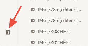 On my ipad the left panel doesn't drag to close. How can I close it and see my images full screen?