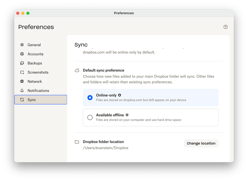 Besides the visual you’ve already provided, can you also visit the Sync tab of your desktop app preferences and send me one more screenshot of your Dropbox folder’s location?