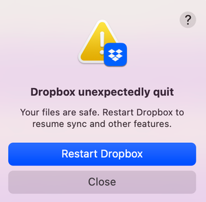 Seem to be getting an error message repeatedly telling me dropbox has to restart. Anyone else?