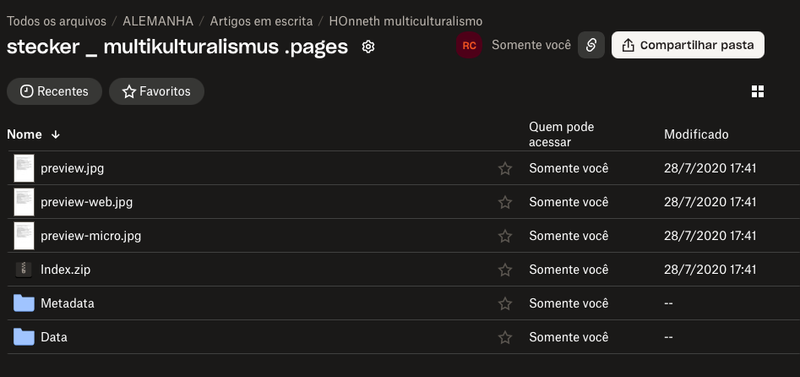 Let me start by clarifying that .pages files are not supported for preview on the Dropbox website at the moment and what you see is actually expected since they're package files.