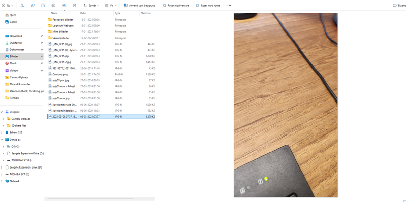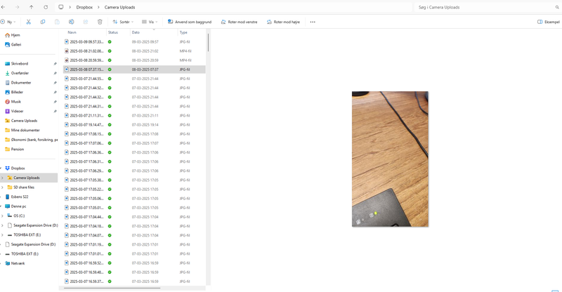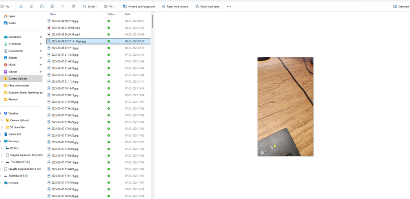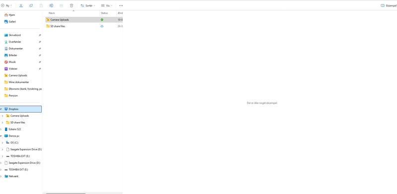 Normally when I browse through my camera uploads on my PC, I can see the pictures on the right side of the screen when I push "Example". These pictures are large.