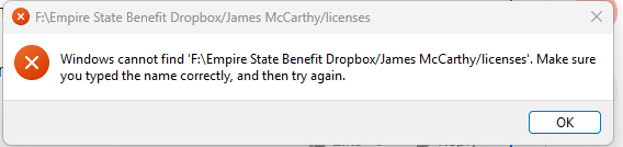 When I search dropbox and then click on a folder, windows cannot find the folder. This is only happening with some folders, not all.