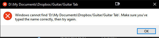 You can see the issue is the change from backslashes to forward slashes after the DropBox folder: