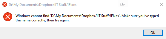 Windows cannot find folders revealed by search Dropbox