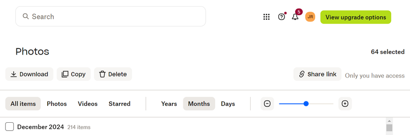 When we go to search our product images throughout months, then we cannot deselect. We will need to close the tab or start unselecting each photo. There is no option to unselect all or clear selection to start a new batch.