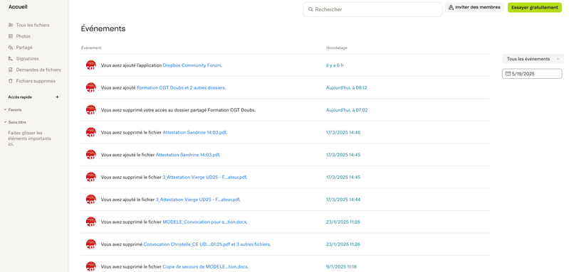 This is quite troubling — I can see in the screenshot: "You removed your access to the shared folder 'Formation CGT Doubs.' Today, at 07:02," even though I wasn’t even at my workstation at that time. Where could this have come from???
