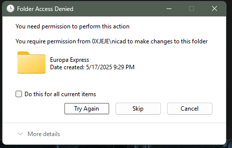 Can you also send me a screenshot of the properties of both the Europa Express folder and its parent folder?