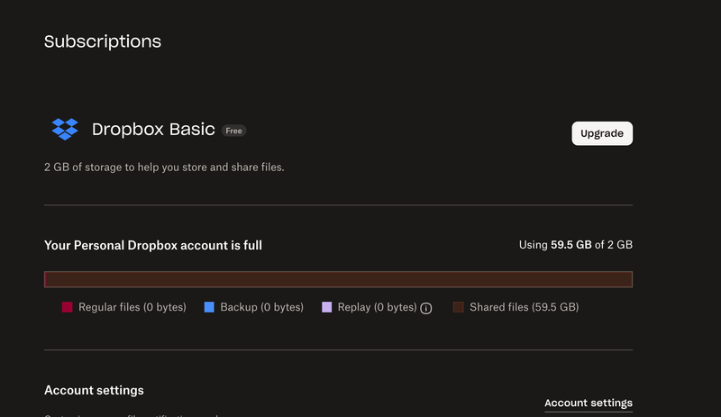 I've had the "You're out of storage" message for about a year but most of my dropbox usage is temporary file viewing (via "viewed links") that is sent to me from other people for quick download to my device then I never see it again.