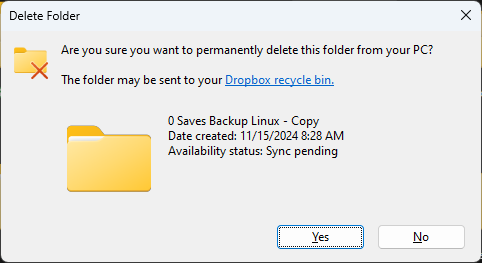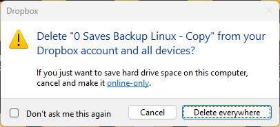 I am unable to shift+delete any folder inside my dropbox folder so I can skip the recycling bin. This seems to be connected to this new popup about asking if I'm sure I want to delete for everyone. Which is very strange, because this is NOT in a folder I've shared with anyone else.