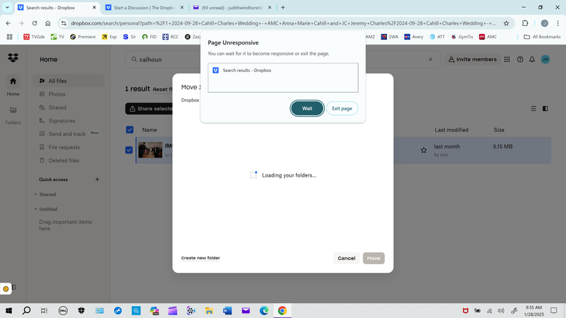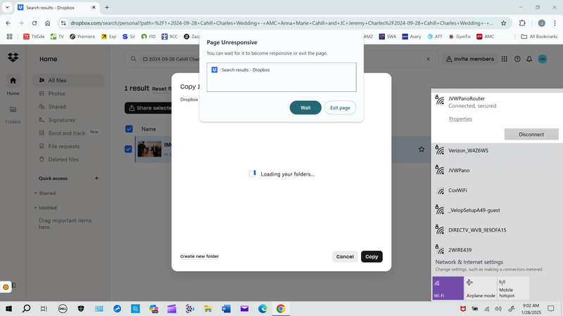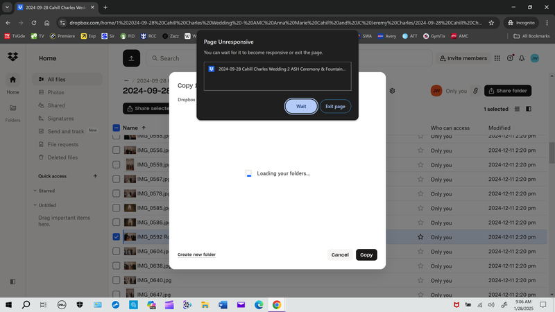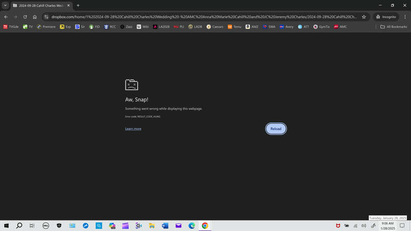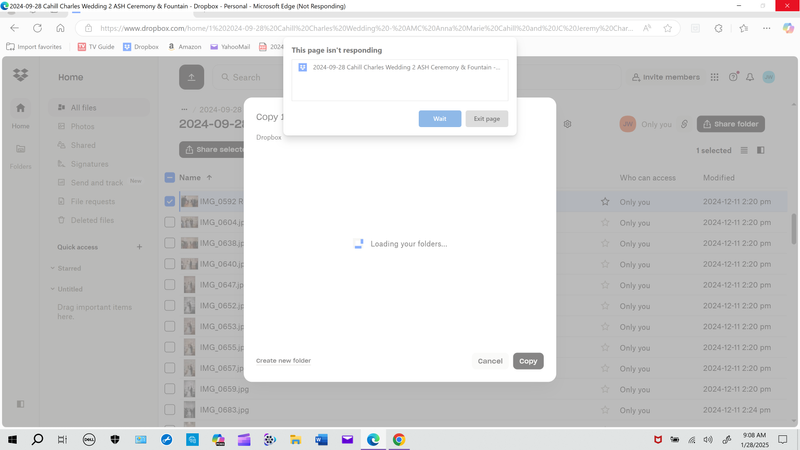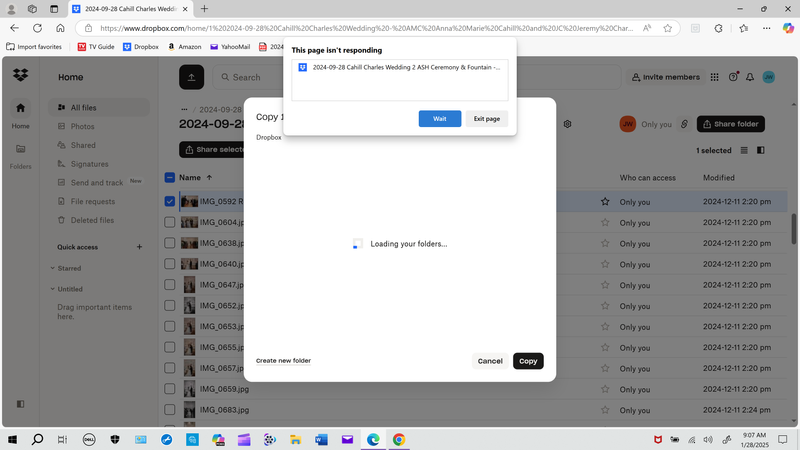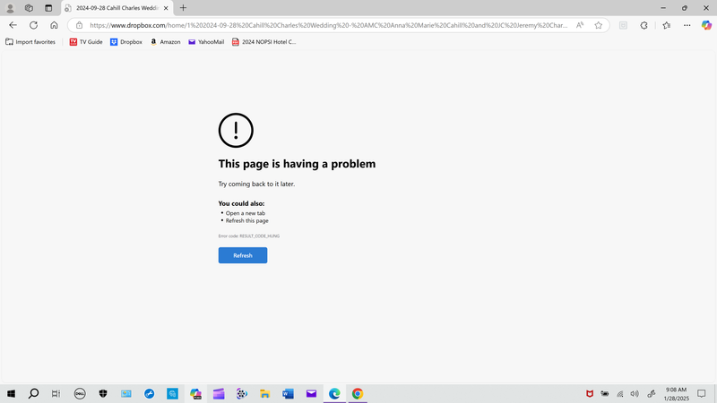 The Folder List will not populate when trying to copy of move files on the Dropbox website. I wish Dropbox had told me what the problem was the last time this happened. After way too much time addressing it then, issue just went away and resolved itself or Dropbox did something to fix it without telling me what it was. I'm actually a bit angry now that I wasted over an hour selecting items to copy only to get the same problem again (Chrome Aw Snap error and Edge page-problem errors after waiting for Folder List to populate) still with no idea on how to solve it other than to rant on this Community. Then wasted at least another 40 minutes just documenting the problem and putting together this post.