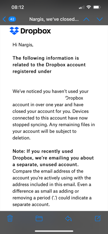 Do you mean that your Dropbox account was deactivated due to inactivity or did something else happen?