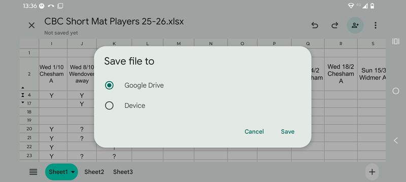 Thanks Hannah I'm guessing it's sheets asking to save because I'm not in the Dropbox app. Screenshot is attached.