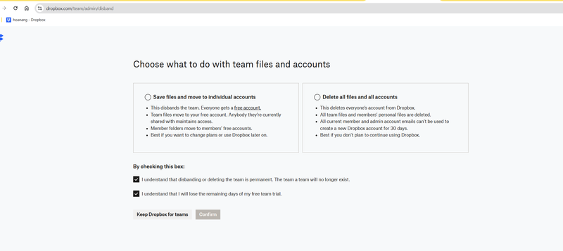Today, I tried create a trial business account which [removed per the Dropbox Community Guidelines] .When canceling the package, I saw popup as photo below. So, can you trace any history deletion files or removing package from my account.