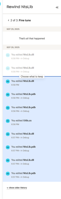 But the problem is, as you can see the whole page worth covers a mere 2 minutes. For some active projects, this kind of intense activity occurs all day. So if it's 7:00 PM and I need to rewind to 11:30 AM, I have to hit "show older history" a lot before I get down to where I need.
