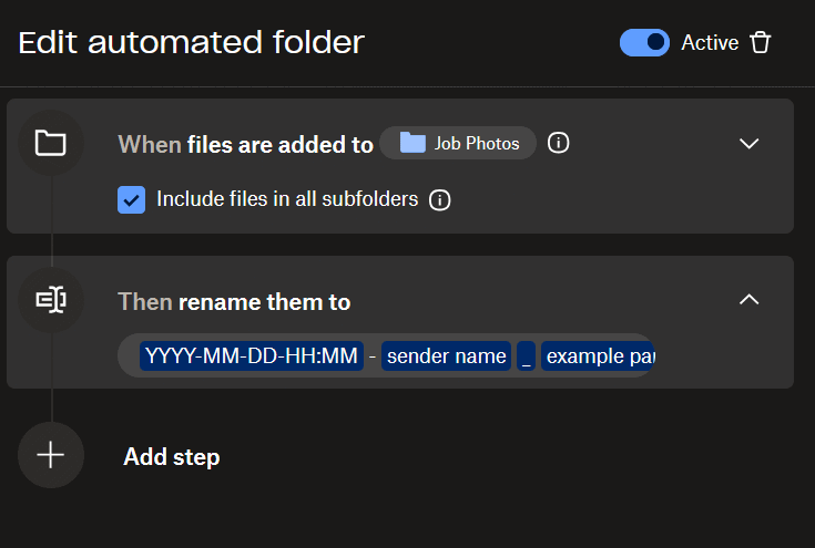 I'm confused why my parent folder doesn't have a naming convention option anymore, only an automation option that only seems to apply when new files are uploaded, so the old ones aren't renamed - Jay8 months ago