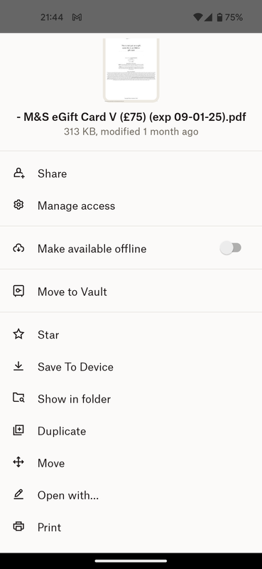 - Alan R.43 years agoHelpful | Level 6Hi Hannah - no, as mentioned I'm using the latest Android version, not iOS. I've tried clearing application cache but to no avail. Just to check, you are looking at when in the PDF view of the file aren't you? As I say that's where it has disappeared from, it's still there if done from the main files list but as per my OP that has the whole issue of being sure you have the right file if it's a long filename and it used to work in both scenarios.