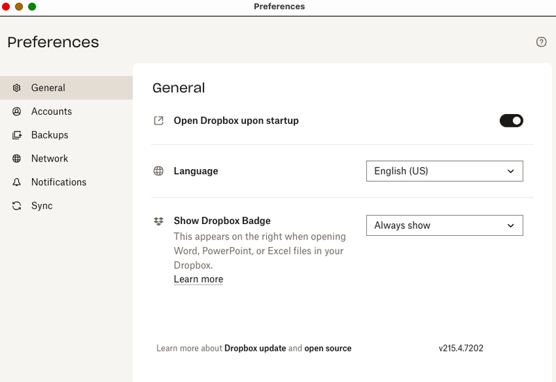 This is an unlinked Dropbox on Mac Sonoma 14.5