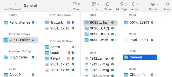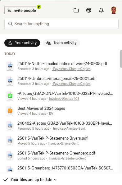 In short, performance has been spotty to non-existent on both machines. Neither machine has any odd configuration or integration as the DB folders are in the default locations in the Library/CloudStorage folder (with aliases--business and personal DBs--appearing in the user folder). I would note that on the desktop just now my primarily DB Team folder also has no sync symbol, but the other three DB folders do have this.