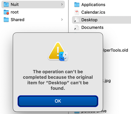 You mentioned that both folders on your Mac show as aliases that go nowhere.