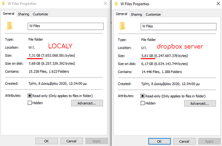 a file of mine a veracrypt file isnt synced right. look the foto , i downloaded the file to test if everything is ok in it and i found out that it isnt. also everytime i dismount veracrypt file dropb...