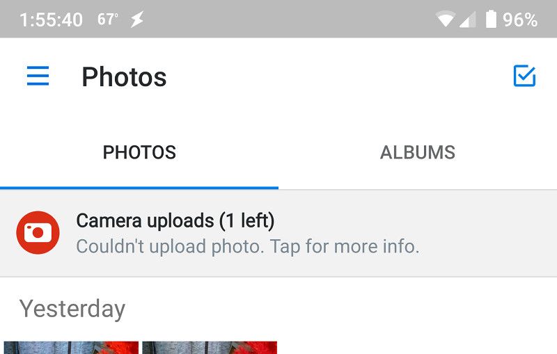 For weeks now, Camera uploads has a message at the top: