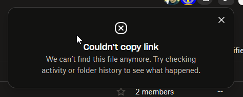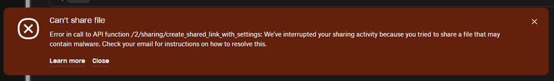 Cannot create links to share files. "We’ve suspended your sharing activity" error.